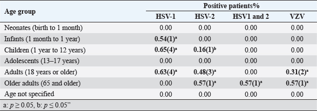 Fig. 1. The age and gender distribution of herpes suspected patients. Table 1. Categorization of encephalitis-positive patients with different age groups.