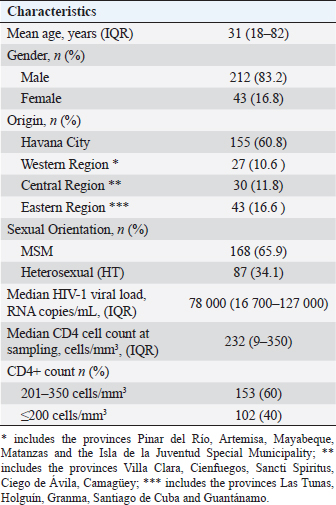 AbstractBackground: The presence of antiretroviral-resistant human immunodeficiency virus (HIV)-1 genetic variants in patients with late presentation to health care may impact the success of antiretroviral therapy (ART), costs of care, and potential HIV transmission. Aim: To determine the prevalence of pre-treatment HIV-1 drug resistance to antiretrovirals (pre-treatment HIV-1 drug resistance (PDR)) in Cuban patients classified as late presenters (LPs). Methods: A retrospective cross-sectional study was carried out on 255 HIV-positive Cubans classified as LP (CD4+ T cell count ≤ 350 cells/mm3) and included in PDR surveillance studies in Cuba during the period 2009–2020. The viral subtype and the genotypic profile of antiretroviral resistance were analyzed. Some clinical and epidemiological variables were evaluated. Results: 83.2% of the patients were male and 65.9% were men who had sex with other men. The average age was 31 years. 40% of the individuals studied had advanced disease (CD4+ T cell count ≤200 cells/mm3). The predominant genetic variants were subtype B (29.4%); CRF20, 23, 24_BG (24.3%), and CRF19_cpx (22.4%). The prevalence of pre-treatment HIV-1 drug resistance (PDR) was 21.2% (95%, CI 16.3–26.7). The prevalence was 8.2% (95%, CI 5.3–11.9) for any nucleoside reverse transcriptase inhibitor (NRTI), 15.1% (95%, CI 11.2–19.7) for any non- NRTI (NNRTI), and 2.1% (95%, CI 0.75–4.41) for any protease inhibitor (PI). 9.25% of the LPs with PDR died a year after diagnosis of the HIV infection. The most frequent mutations were K103N (6.7%), G190A (4.7%), and M184V (4.3%). The treatment will not be effective in 17.3% of patients who start therapy with the NRTI + NNRTI combinations. Conclusion: The high PDR values in LPs show the need to enhance genotypic studies of HIV resistance in this population at the time of diagnosis of the infection, since the success of first-line ART may be compromised and influence compliance with the global goals set forth by United nations acquired immunodeficiency syndrome for the year 2030. Keywords: Cuba, Late presenters, Resistance, Antiretroviral therapy, HIV. IntroductionThe use of antiretroviral therapy (ART) has reduced mortality and morbidity in people living with human immunodeficiency virus (HIV) (PLWH) (Günthard et al., 2014). However, these results largely depend on early diagnosis of HIV infection and early initiation of ART. The global quest to end the HIV/acquired immunodeficiency syndrome (AIDS) pandemic by 2030 has focused its strategies on diagnosing, treating, and maximizing viral suppression among PLWH, with the goal of preventing AIDS-related diseases and reducing the risk of HIV transmission (WHO, 2016). Late presentation to health care is one of the problems that can compromise the achievement of global goals. Late presenters (LPs), according to a consensus definition, are HIV-infected individuals who present with an initial CD4 cell count of less than 350 cells/mm3 or an AIDS-defining event, regardless of the CD4 cell count (Antinori et al., 2011). LPs are more likely to transmit HIV, are associated with a negative impact on mortality and morbidity, and increase health care costs, resulting from higher rates of hospitalization and treatment of opportunistic infections in addition to primary treatment of the HIV infection (Guaraldi et al., 2017). Transmitted and pre-treatment HIV drug resistance also constitutes a barrier to meeting the goals set forth by United nations acquired immunodeficiency syndrome (UNAIDS). The World Health Organization (WHO) has provided a global action plan on HIV drug resistance with the aim of minimizing the emergence of drug resistance, prolonging the effectiveness of first- and second-line therapies and improving the quality of life of PLWH (WHO, 2017). HIV drug resistance surveillance actions in the newly diagnosed population without ART, through national surveys or periodic studies, provide elements that allow the fulfillment of the objectives stated in said strategy. The presence of HIV variants with mutations associated with resistance in some of the drugs used in first-line ART regimens can compromise its success in PLWH (Tang and Shafer, 2012), and if is an LPs, the probabilities of failure and poor evolutionary prognosis will be greater. Although late diagnosis of HIV continues to be a problem in low- and middle-income countries (WHO, 2023), there are few studies on the behavior of HIV pre-treatment resistance in LPs. Within the premises of the National Strategy for the diagnosis of HIV in Cuba, there is broad population coverage and early diagnosis (Díaz et al., 2011). Until December 2023, data from the Cuban Ministry of Public Health report a cumulative number of 41,178 people diagnosed with HIV infection since 1986, of which 32,808 are alive, 27,739 PLWH receive ART, and of them, 24,771 (89.3%) achieved viral suppression (MINSAP Computerized Registry, 2023). In Cuba, between 9% and 15% of people who are diagnosed with HIV infection in a year, are classified as LPs (MINSAP Computerized Registry, 2023). Studying the behavior and factors that influence the late presentation of HIV constitutes a challenge for National Programs, which must explore strategies that reduce its appearance and thus achieve compliance with UNAIDS goals. The National sexual transmission infections/HIV/AIDS Program of Cuba has incorporated into the national strategic plan for the prevention and control of STIs, HIV, and viral hepatitis, a surveillance strategy for HIV drug resistance in the newly diagnosed population. The objective of the present study is to determine the prevalence of pre-treatment HIV-1 drug resistance (PDR) in Cuban PLWH classified as LPs. Materials and MethodsSample population and inclusion criteriaA descriptive and retrospective cross-sectional study was carried out on 255 Cuban PLWH classified as LPs (CD4 + T cell count ≤ 350 cells/mm3) in the period 2009–2020 and previously includ