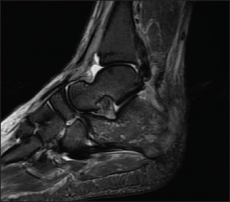 ABSTRACTBackground: Melioidosis is an emerging infectious disease caused by the Gram-negative bacterium Burkholderia pseudomallei, which can lead to a range of clinical manifestations including acute septicaemia and chronic localized infections. Osteomyelitis is an uncommon but well-recognized complication of melioidosis, with the calcaneus being a relatively rare site of involvement. Case Description: The authors present a case series of three patients with calcaneal osteomyelitis caused by Burkholderia pseudomallei, infection. All three patients presented with non-specific symptoms like fever and weight loss, followed by localized ankle/foot pain and swelling. Diagnosis was made based on imaging findings (radiographs and MRI) and isolation of Burkholderia pseudomallei, from blood or pus cultures. Treatment involved a combination of initial intravenous antibiotic therapy (meropenem or ceftazidime) for 4–6 weeks, followed by oral trimethoprim-sulfamethoxazole for 6 months. One patient required surgical drainage of a plantar abscess. All patients had a favorable clinical outcome with a resolution of osteomyelitis on follow-up imaging. Conclusion: Calcaneal osteomyelitis is a rare but potentially serious complication of melioidosis. Early recognition and prompt initiation of appropriate antibiotic therapy are crucial for favorable outcomes. Clinicians should maintain a high index of suspicion for osteomyelitis in patients with melioidosis, especially in patients from Endemic areas as well as in patients with risk factors like diabetes. Close follow-up and monitoring for potential relapse or reactivation are essential, particularly in immunocompromised individuals.Keywords: Melioidosis, Burkholderia pseudomallei, Osteomyelitis, Calcaneal, Case series. IntroductionMelioidosis is an emerging infectious disease caused by the Gram-negative bacterium Burkholderia pseudomallei, found in soil and water in tropical and subtropical regions (Wiersinga et al., 2012). The clinical manifestations range from acute septicaemia to chronic localized infections, with a high mortality rate in untreated cases (Limmathurotsakul et al., 2022). Osteomyelitis is an uncommon but well-recognized complication of melioidosis, occurring in approximately 3.8% of cases (Currie et al., 2010). While any bone can be affected, calcaneal osteomyelitis is relatively rare, with only a few cases reported in the literature (Chetchotisakd et al., 2008; Dance, 2014). Here, we present a case series of three patients with calcaneal osteomyelitis caused by B. pseudomallei infection, highlighting the clinical presentation, diagnosis, and management of this unusual complication. Case DetailsPatient 1A 70-year-old male known to have diabetes mellitus presented with a 1 month history of fever and weight loss. History of multiple hospital visits and several courses of oral and intravenous antibiotics were present. Physical examination revealed hepatosplenomegaly. As he was fitting the criteria for Pyrexia of Unknown origin, work for the same was done. Routine investigations showed neutrophilic leucocytosis with raised inflammatory markers. Widal was negative. Ultrasound abdomen showed features of chronic liver disease. Contrast CT scan of abdomen showed splenic infarcts. He was started on antibiotics, but he had ongoing fever spikes. While in hospital he developed difficulty in walking due to left ankle pain. MRI foot (Fig. 1) was taken showed small intraosseous abscess in calcaneal bone. Blood cultures grew B. pseudomallei. The patient had a good recovery and was followed up in the outpatient clinic ray foot (Fig. 2) was repeated showed a resolution of osteomyelitis. Patient 257-year-old male with diabetes, presented with complaints of intermittent fever for 4 weeks. It was associated with loss of appetite and significant loss of weight. No associated pain abdomen, vomiting, altered bowel and bladder habits. On physical examination, he had hepatomegaly. Workup for pyrexia of unknown origin was done. Mantoux test was negative. Chest X-ray showed prominent Broncho vascular markings. Contrast CT of abdomen showed splenic infarct with intraluminal short segment partial thrombosis of the proximal splenic vein along with heterogeneously enhancing subcarinal and right lower paratracheal mediastinal lymph nodes with central necrosis — probably granulomatous infection. Endobronchial ultrasound guided fine needle aspiration biopsy of mediastinal lymph nodes was done. Cytology was negative for malignancy. Histopathological report was suggestive of acute suppurative inflammation, with negative gram stain and Acid-Fast stains. But his blood culture grew B. pseudomallei and the whole clinical picture was suggestive of melioidosis. He also developed pain and swelling around left ankle joint while in hospital. On examination he had tenderness and warmth around left ankle with restricted movements. Orthopaedics consultation was obtained and an MRI ankle joint (Fig. 3) was done which showed features of acute osteomyelitis of calcaneum (multiple micro abscess) with adjacent intermuscular and fascial abscesses. Ultrasound guided aspiration of the plantar abscess was done and pus was aspirated. Culture grew B. Pseudomallei. The patient was diagnosed with osteomyelitis caused by melioidosis and was treated with intravenous Meropenem for 6 weeks, followed by oral cotrimoxazole for another six months. The patient had a good recovery and was followed up in the outpatient clinic.