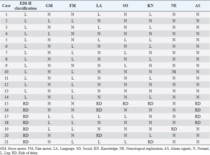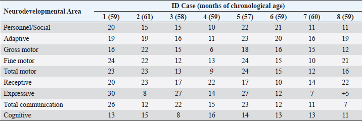 Table 3. Differences between chronological ages and equivalent ages (IDB-II) in the areas of neurological development.