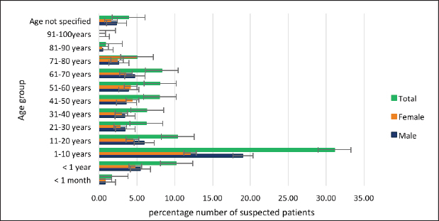 Fig. 1. The age and gender distribution of herpes suspected patients. Table 1. Categorization of encephalitis-positive patients with different age groups.
