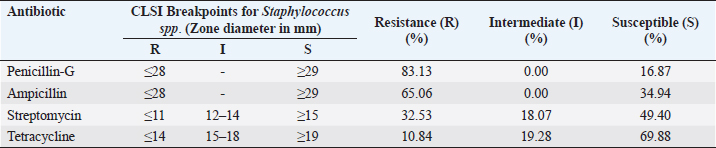 Table 2. Percentage of resistance (R), intermediate resistance (I), and susceptible(S) for four distinct antibiotics related to L. monocytogenes samples from the Colombo District.