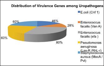Fig. 8. Distribution of virulence genes among uropathogens. Table 4. Antibiotic sensitivity pattern of UTI Isolates.