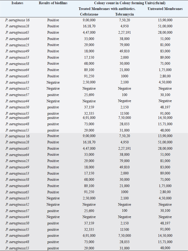 Detection of AlgD gene in Pseudomonas aeruginosa using polymerase chain reactionThe AlgD gene was amplified using primers according to the sequence described (Lanotte et al., 2004). Table 2 using 1.0 µl of template DNA as extracted through mini prep, AlgD Forward primer, 2.0 µl algD Reverse primer 2.0 µl, dNTPs 2.5mM (Chromous biotech pvt LtD) 2.0 µl Taq Assay buffer 10X (chromous Biotech Ltd India) 5.0 µl, Taq polymerase (Chromous biotech pvt Ltd India) 0.5 µl, nuclease-free Water 37.5 µl following the PCR conditions as follows: initial denaturation at 94cº for 5 minutes, annealing at 50cº for 45seconds, extension at 72cº for 1minute and single final extension at 72cº for 5 mins and analyzed on 2% agarose gel Fig 4. Detection of quorum sensing genes (las-r and rhlR) in P. aeruginosa biofilmsOligonucleotide primers for las-r and rhlR (Chromous Biotech Pvt ltd) expression genes were used to study the quorum sensing genes. Amplification cycles were performed for an initial denaturation time of 1 minutes at 94°C, annealing of primers for 1 minutes at 52°C, and primer extension for 1.5 minutes at 72°C for 30 cycles. Agarose gel (2.0%) (Fig. 5) was used to examine the products after PCR using the primer sequences discussed in Table 2. Identification of Pseudomonas aeruginosa using 16rDNA sequencingGenomic DNA was isolated from the pure culture of the test organisms. The rDNA fragment was amplified using a high-fidelity polymerase chain reaction. The PCR product was sequenced (Chromous Biotech Pvt Ltd India) bidirectionally using forward and reverse primers, and the sequence data was aligned and analyzed for homology with the sequences available in GenBank with NCBI Accession No P. aeruginosa AL98; AJ249451, 42A2 NCBI 40045; AJ309500 0.996 Pseudomonas sp.; OLB-1, AJ387904. Growing and analyzing static biofilms in P. aeruginosa isolatesA colony biofilm assay was performed on P. aeruginosa isolates using a previously described method (Merritt et al., 2005). Five isolates of P. aeruginosa were selected for the study. A loopful of the culture was inoculated into 5 ml of Luria–Bartini broth and grown overnight at 37cº. Using sterile forceps, a 25 mm nitrocellulose membrane with a pore size of 0.22 um was positioned in a sterile Petri plate approximately 30 cm apart from the UV light source in a sterile environment. Diluted stationary-phase cultures (step 1) in the appropriate medium to an OD600 of 0.05 (~1.64 × 108 cfu/ml) were used. The nitrocellulose membranes were placed with their shiny side up on an agar medium plate not containing antibiotics, and inoculated with 5 μl diluted culture. The procedure was repeated for all remaining membranes from (step 2), inoculating up to six membranes on the same agar plate. When the liquid on the membranes had dried, the plates were incubated upright at the appropriate temperature for 24 hrs. Using sterile forceps, each membrane was gently lifted off of its agar plate and transferred to a fresh agar plate at up to six membranes per plate. The plates were incubated for 24 hr at the appropriate temperature (Fig. 6). Biofilm growth was analyzed by aseptically transferring the membranes in 15ml of tubes containing 10ml of sterile phosphate buffer saline. The tubes were capped, and the samples were vortexed to detach all the bacteria. A dilution series of the vortexed samples was prepared, and each dilution series was prepared on separate agar plates. The plates were incubated overnight, and the colony count was determined using the average number of colony-forming units (cfu) per membrane. A similar method was followed with membranes supplemented with and without antibiotics (Ceftriaxone and Tobramycin) Table 3. PCR analysis of virulent genes in S. aureusThe virulent genes mecA and Pvl were investigated using PCR in S. aureus. Six MRSA isolates of S. aureus ere investigated in this study. The primer sequence was followed by the method described in Table 2. PCR was performed in a 44µL reaction mixture containing 1.5µl of dNTPs (2.5 mM), Taq buffer 5 µl, 1 µl Mgcl2, 1 µl of Taq polymerase, 1 µl (chromous Biotech Pvt LtD, India ) of each primer, and 1 µL of bacterial DNA template. The PCR conditions began with initial denaturation at 95cº for 45 sec, extension at 60cº for 1 min, and final extension at 72cº for 2 min. The amplification conditions for the Pvl gene were denaturation at 94c for 30 sec, annealing at 1 minutes at 55c, elongation at 72c for 1 min, and final elongation at 72cº for 1 minutes. The product size was determined using 2% agarose gels (Fig. 7). Agarose gel electrophoresis of the Plasmid DNA and PCR productsFive microliters of the purified plasmid DNA were loaded directly onto an agarose gel, along with a Lambda DNA/Hind III digest molecular marker (Chromous Biotech Pvt Ltd). Lambda DNA, digested with Hind III, generates eight fragments ranging from 1215 bp to 23,130 bp. The concentration of the marker is 200 ng/µl in a 1% agarose gel. This method ensured the isolation of high-quality plasmid DNA suitable for further analysis and experimentation. All PCR products were analyzed in 1.5%–2% of Agarose gels depending on the size of the PCR product. Data analysisData was tabulated in percentages (frequencies) using the statistical software SPSS Version 26.0 (SPSS Inc., Chicago, IL). continuous variables were summarized in the form of means, and standard deviations and categorical variables were summarized as percentages. Chi-square test or Fisher's exact test, whichever appropriate, was applied for comparing categorical variables. A p-value of less than 0.05 was considered statistically significant at 95% confidence interval. Ethical approvalSince the urine samples were collected directly from the microbiology departments of various hospitals after the required approvals, no ethical approval was mandatory, as decided by the advisory committee. ResultsAmong the patients with diabetes, 140 were males and 110 were females.