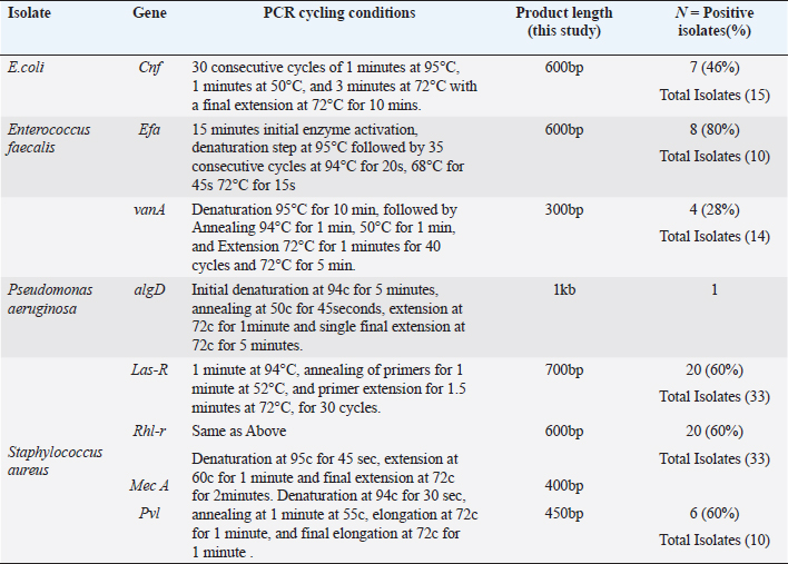 Table 5. PCR cycling conditions and percentage distribution of virulence genes among different species of Uropathogens.