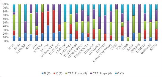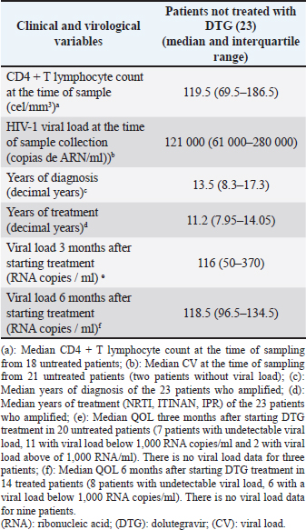 Fig. 2. Most frequent polymorphic positions by subtypes in the coding region for HIV-1 IN detected in the 23 untreated patients. Table 2. Clinical and virological characteristics of patients not treated with DTG.