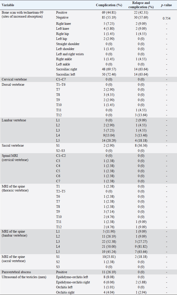 Table 3. Comparison of paraclinical findings in patients with brucellosis in relapse, complication, and relapse-complication groups.